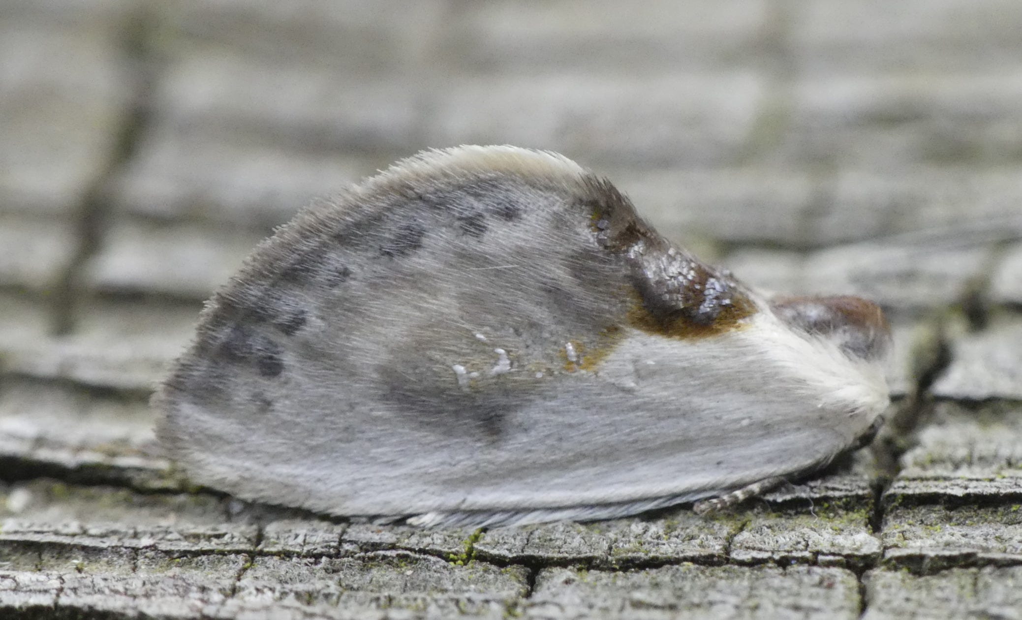 This is a small moth, although officially classed as a macro; it’s about 11mm long. And it looks quite unlike any of the other moths I’ve discussed in this newsletter so far. If you’re wondering where the head is, it’s hidden under the wings at the right-hand end (you can just see one of the legs sticking out). If evolution had a plan, which of course it doesn’t, the plan would be to make this insect look nothing like a moth, but to look like a dollop of bird poo instead; this moth is a bird-dropping mimic (well that’s what we call it in polite society (like Substack) - in practice we usually use a somewhat more colourful word!).