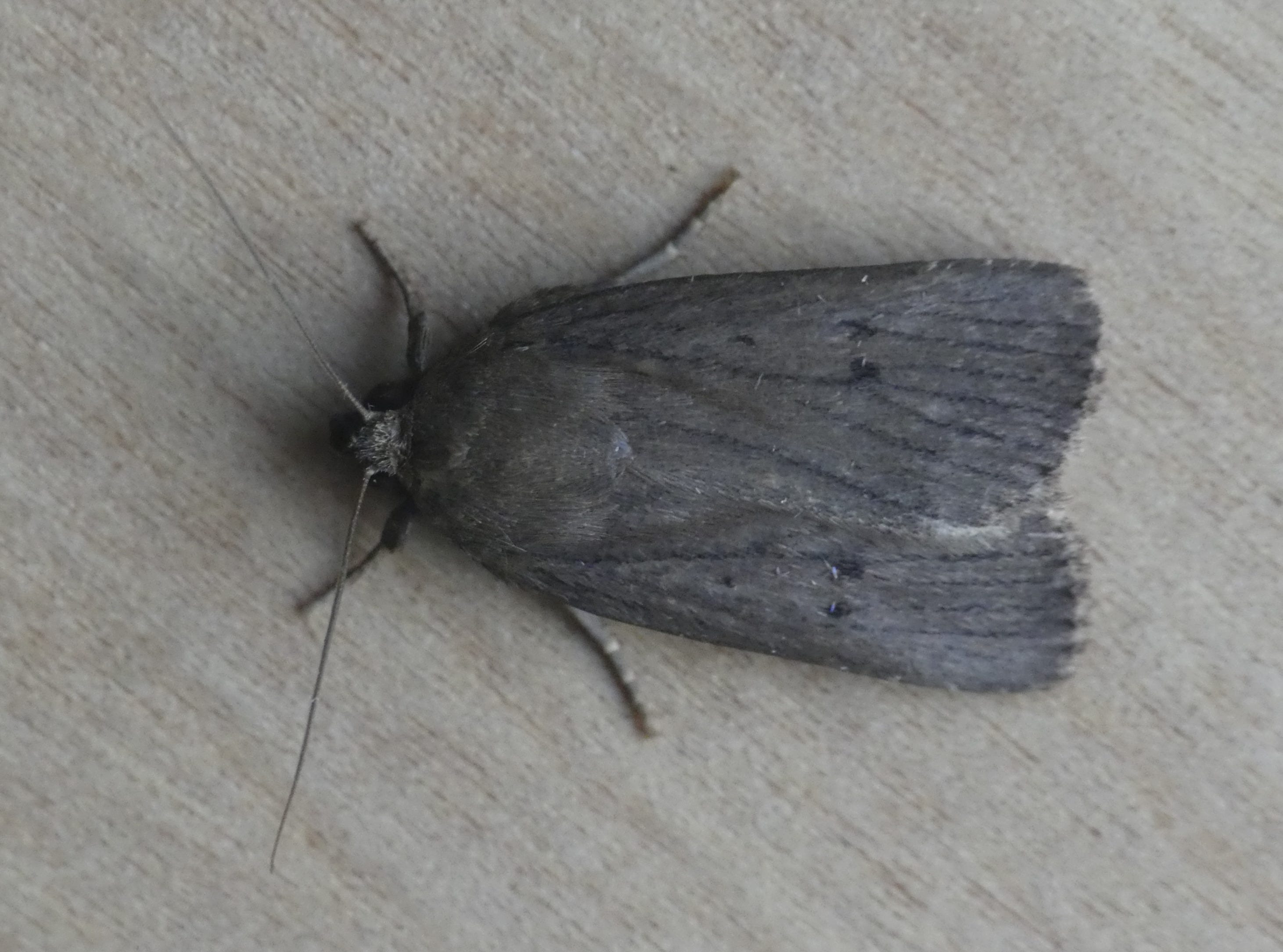 As you can see from the picture, it’s not a moth with any great claim to having a stunning visual impact; it’s just a grey moth with three small blackish spots on each forewing. But it’s not its appearance that gives it its name, it’s its behaviour. When disturbed, most moths adopt one of two tactics. One is to immediately fly off, and the other is to let go of what it was sitting on and drop to the ground, where as often as not it is hidden among the undergrowth. But the Mouse Moth does something different, in which it is quite unusual among moths; it scuttles away on foot, like a startled mouse! It’s quite surprising how fast it can move.