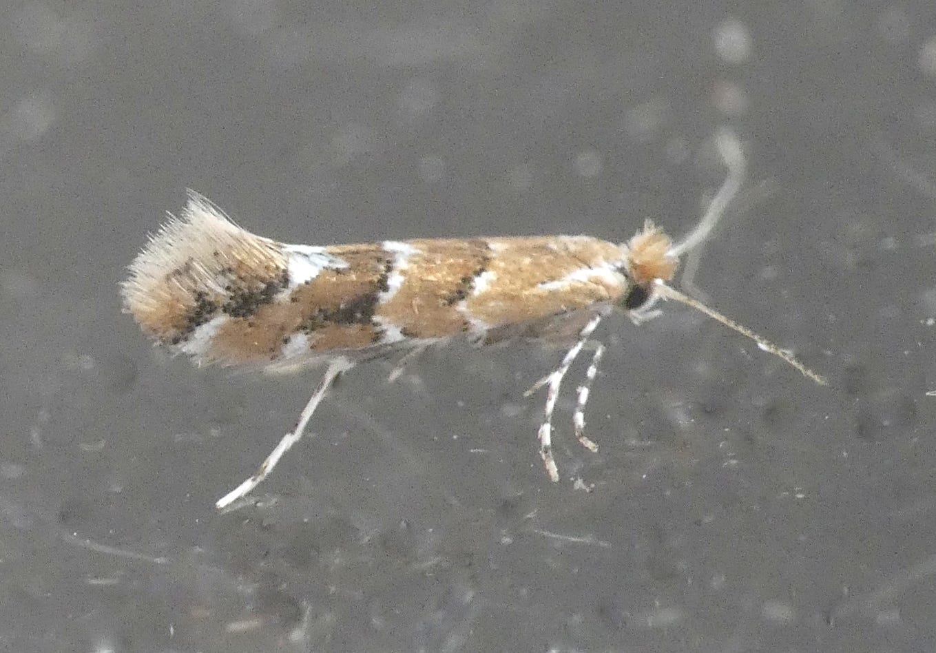 Firstly, apologies for the poor quality of this photo; this is a very small moth (about 3.5mm long) and also usually very active; I’d need to be a much better photographer to get a decent photo of one of these. Some people seem to manage it though, for example this photo posted on Flickr.
