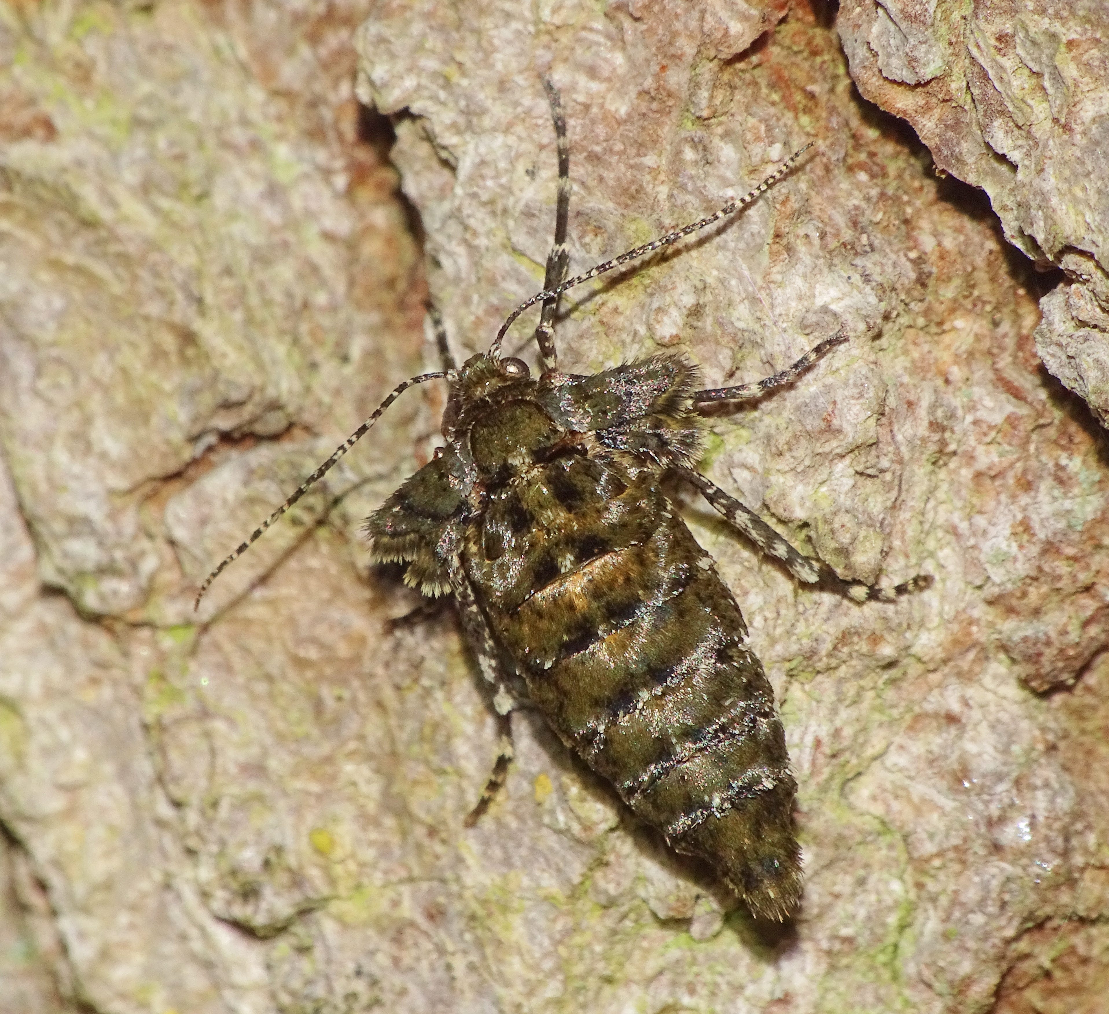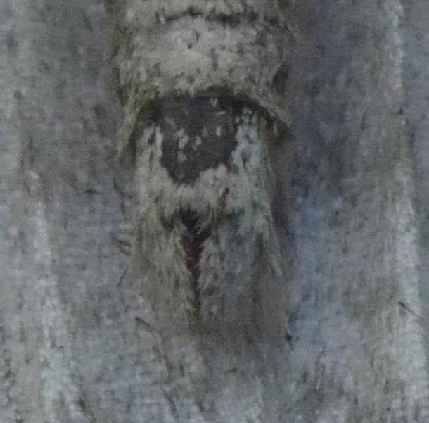 The flight season is November and early December, and like some other moths with flight seasons late in the year it is only the males which are winged; the females have rudimentary wings and remain on the foodplant, for which several deciduous trees including Silver Birch are used. The females climb up the trunks at night to lay their eggs in niches in the bark, or on twigs, and the eggs don’t hatch until new leaves emerge in the spring. This is what the female looks like: