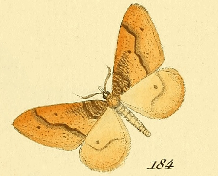 The species name aurantiaria was given to this moth by Jacob Hübner in 1799, it’s from the Latin aurantium which was used for both the colour orange and the fruit; it’s the same root as for aranciata, Italian for orange squash. This is a scan of Hübner’s drawing of the moth (link here):