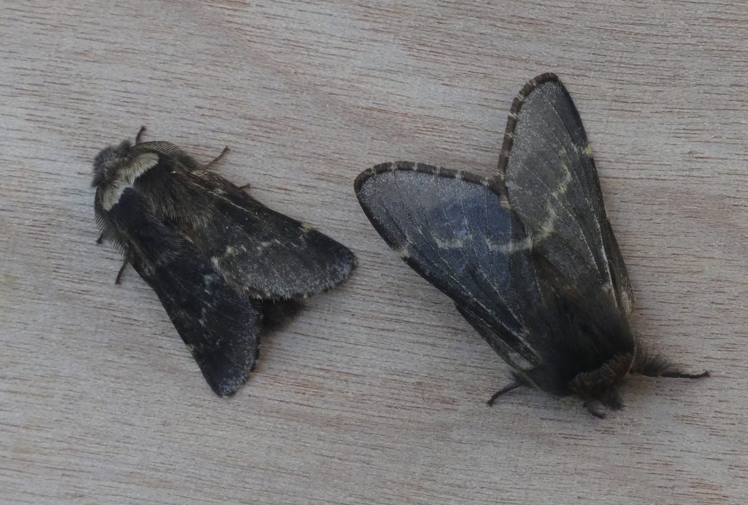 I usually see my first December moth of the year in November, but this year I didn’t see the first one until I had two (a male and a female) on 2nd December. You can see from the photo that the female is larger than the male, and doesn’t have the pale collar that the male has. I haven’t kept records of the sex of the ones I’ve seen, but males are definitely trapped more frequently than females and most of my photos are of males.