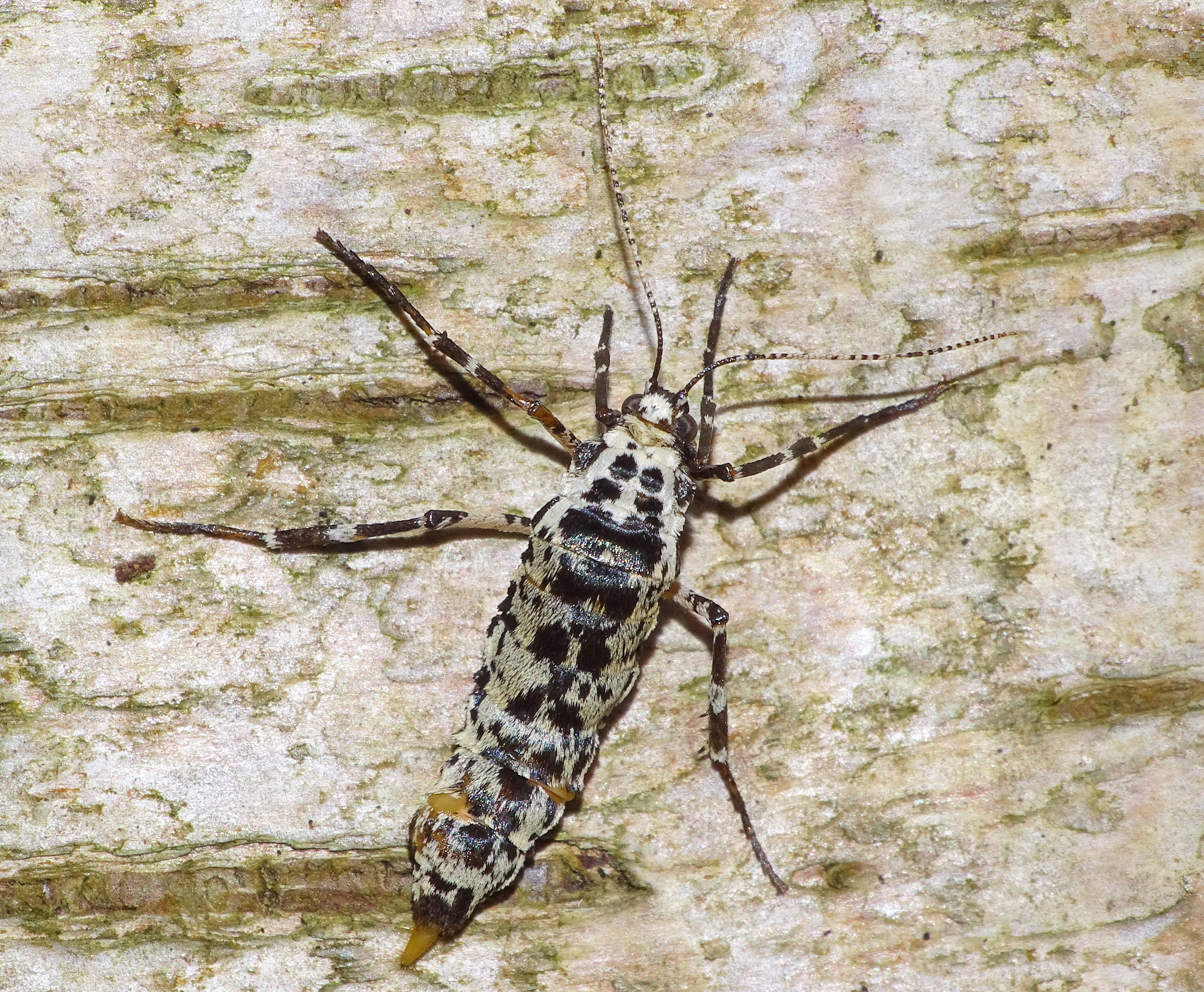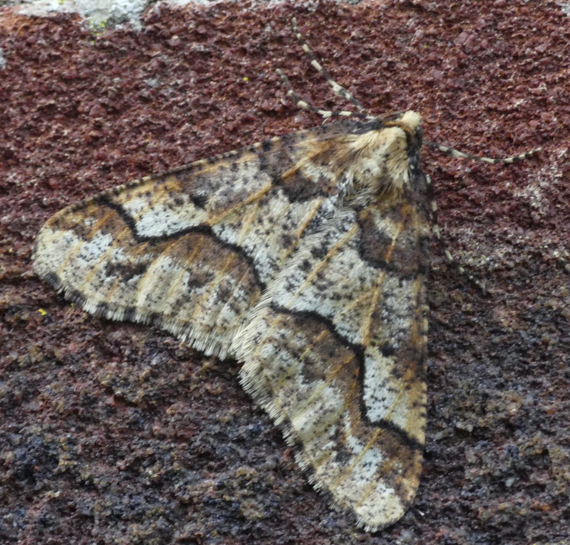 As mentioned above, the Mottled Umber is one of those cold-season moths where the female is flightless, like The Scarce Umber I wrote about recently (here). But while the Scarce Umber female does have rudimentary wings, the female Mottled Umber has none at all. And rather than being dark all over, it is off-white with dark spots.