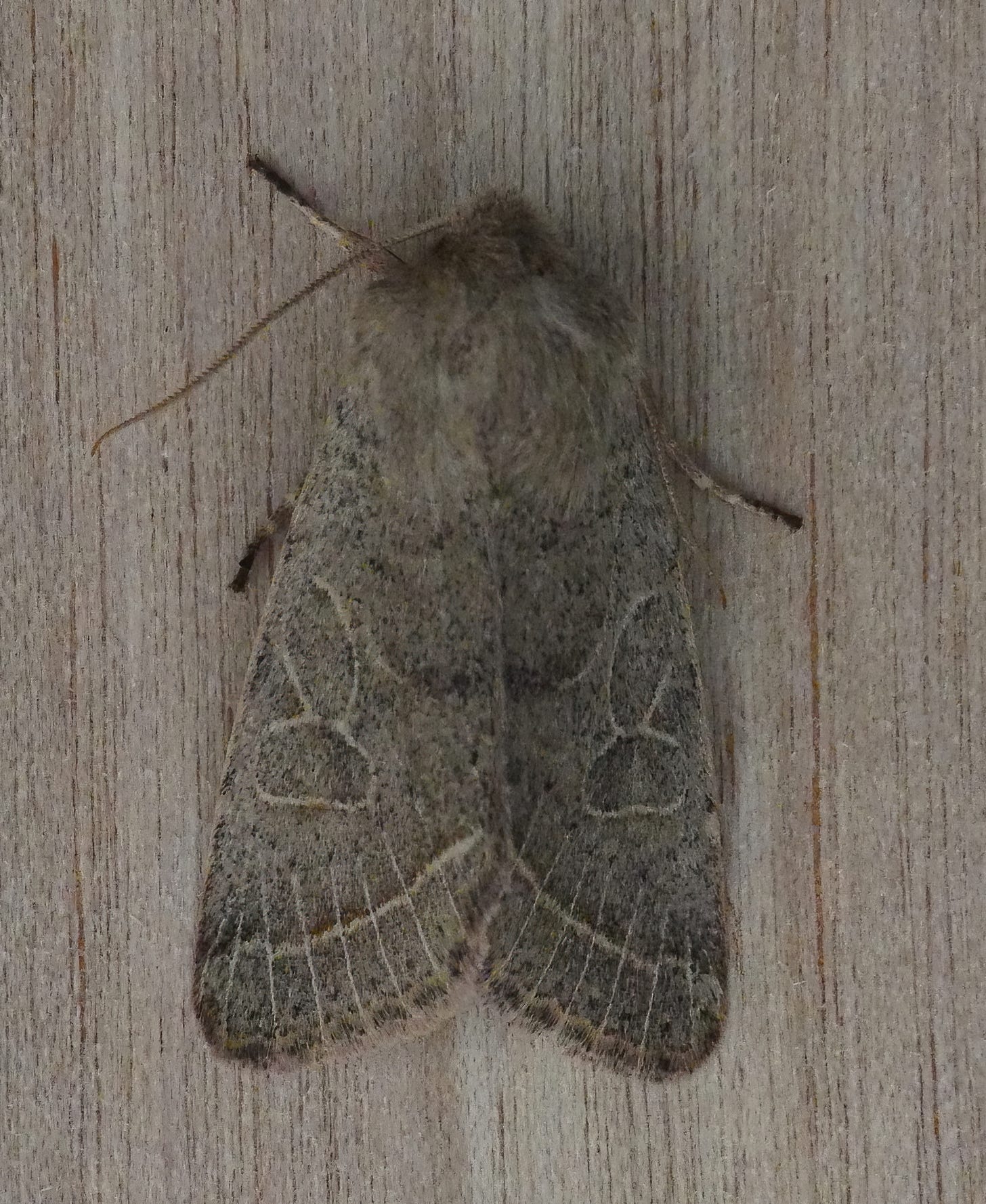 Fresh specimens of this moth give the appearance of greenish-grey colouration; you can perhaps make out a slightly greenish tinge the photo above (or perhaps it’s just my imagination!).