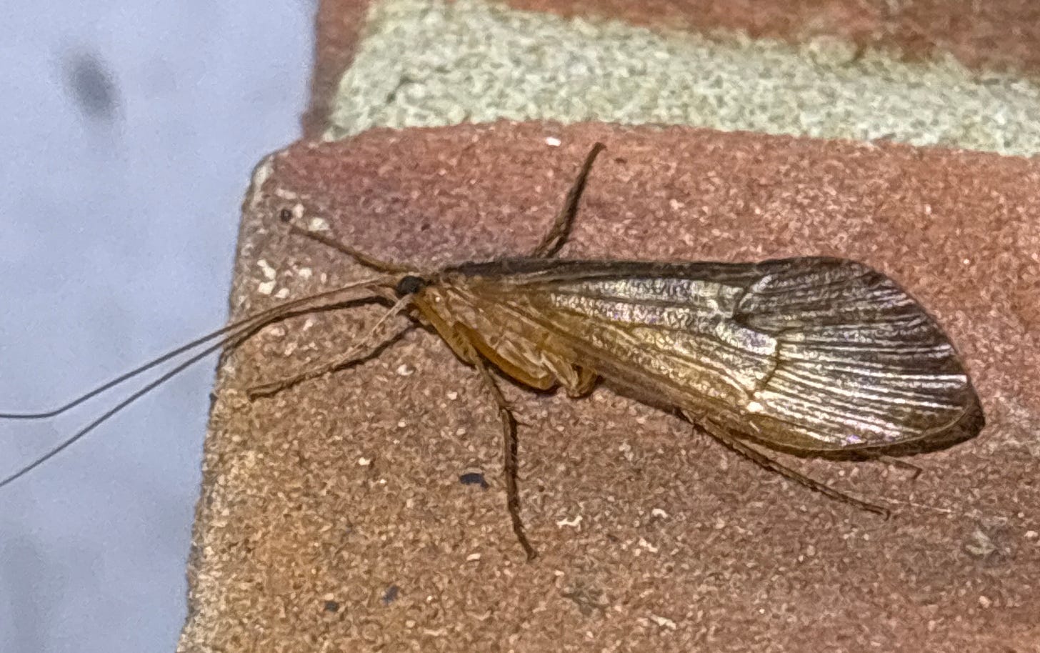 There were no more nights during the week where the omens were all positive; the best option looked like Saturday night (14th), mainly because hardly any wind was forecast. The temperature forecast was a bit on the cool side though, down to 4 Celsius with clear skies, and there was a frost on the car in the morning. The result was 15 moths of 6 species; all the usual suspects for this time of year with nothing that was a new record for the year - well no moths at least, but I did get the first caddis fly of the year, one of the larger ones: