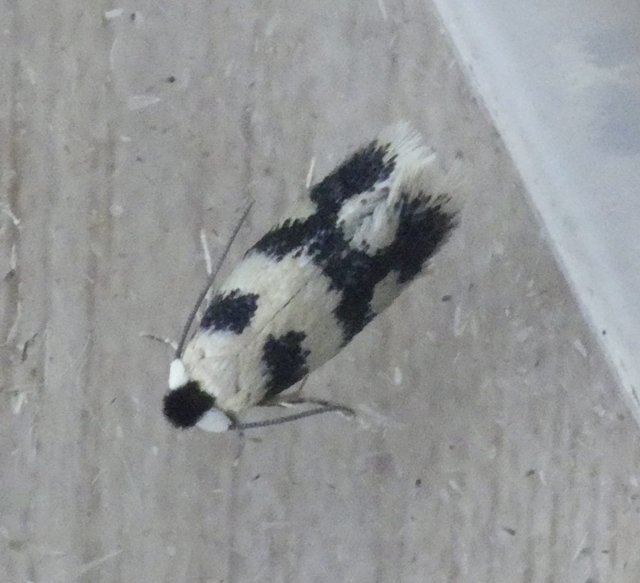 Etainia decentellaThis moth is new for me, although of course it’s quite likely I’ve overlooked it before, such small moths are easy to miss! I was pleased to see it for another reason too. Our neighbour has a large sycamore tree growing close to our fence and overhanging it, and every year we spend ages pulling up sycamore seedlings, they get everywhere. Well the larva of this moth feeds on sycamore seeds! Actually there aren’t many insects that make use of sycamore, but this is one of them. Unfortunately though, it’s so small that it would take thousands of them, if not millions, to make much difference!
